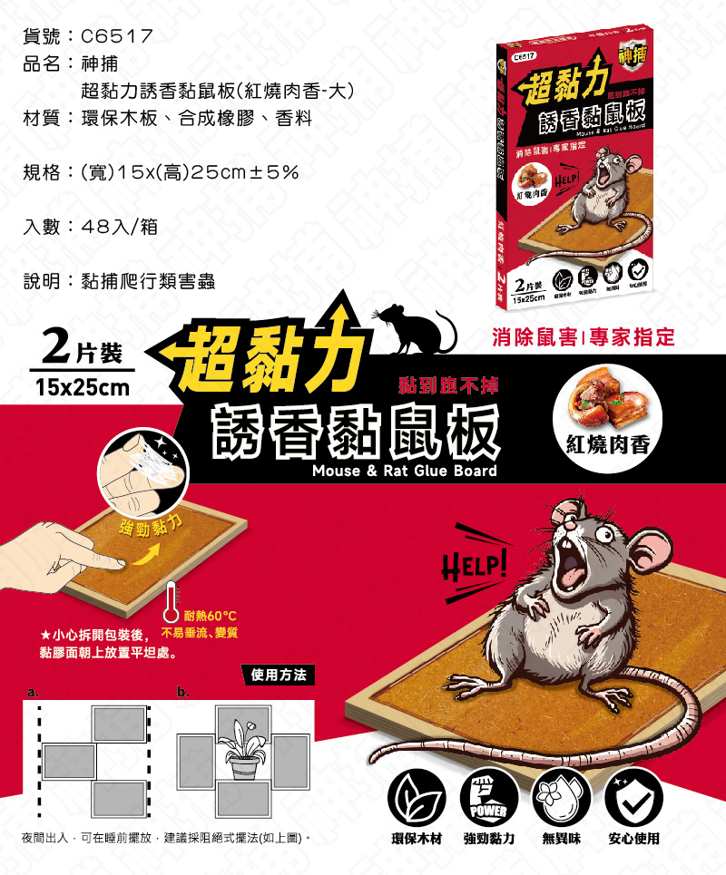 C6524/神捕超黏力誘香黏鼠板(紅燒肉香-大-2入)