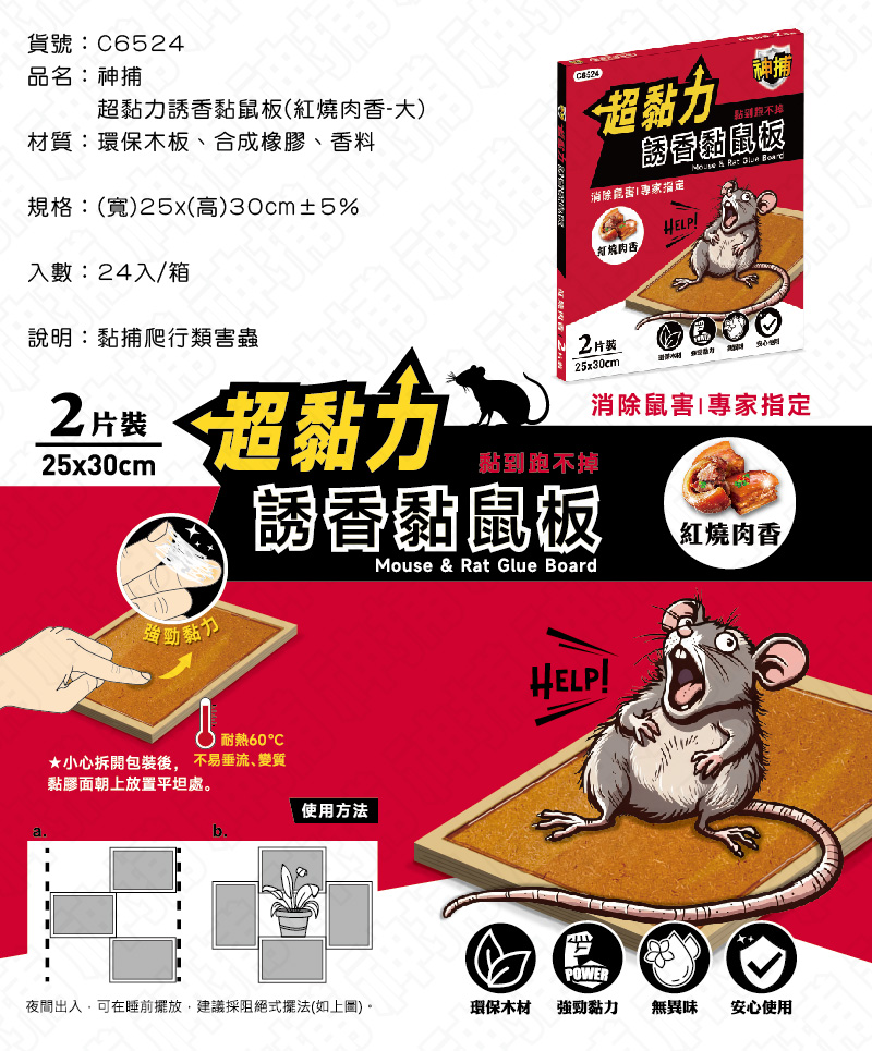 C6524/神捕超黏力誘香黏鼠板(紅燒肉香-大-2入)