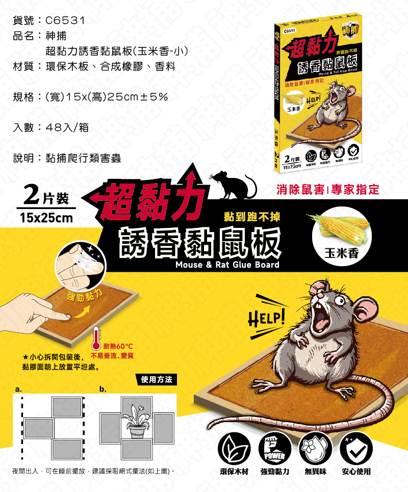 C6531/超黏力誘香黏鼠板(玉米香-小-2入)