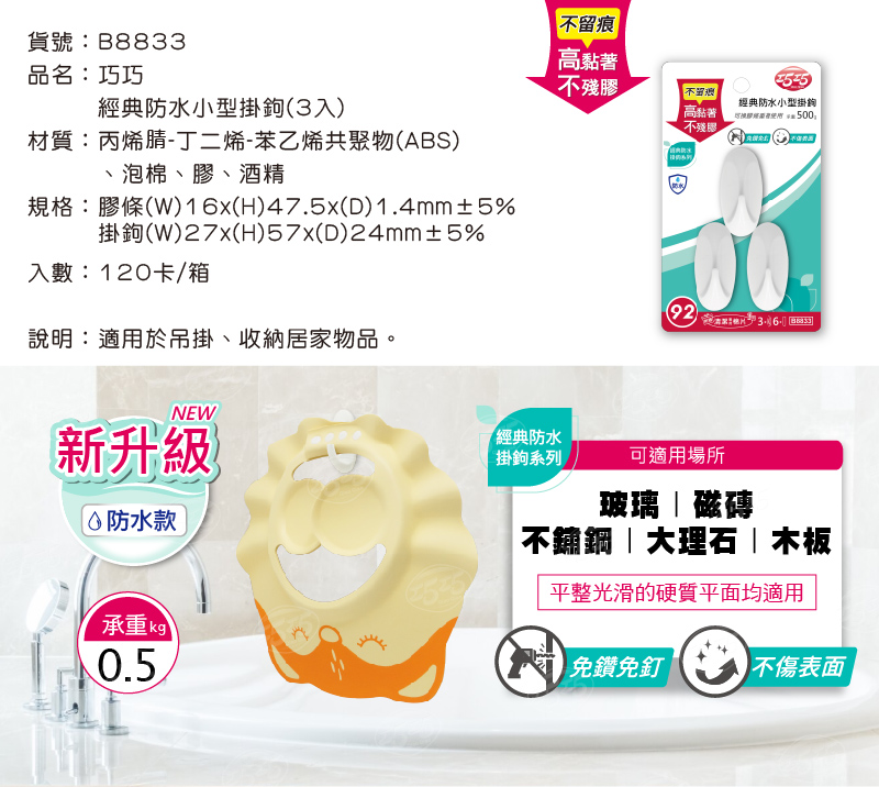 隆藝清潔用品 -- B8833/巧巧經典防水小型掛鉤(3入)