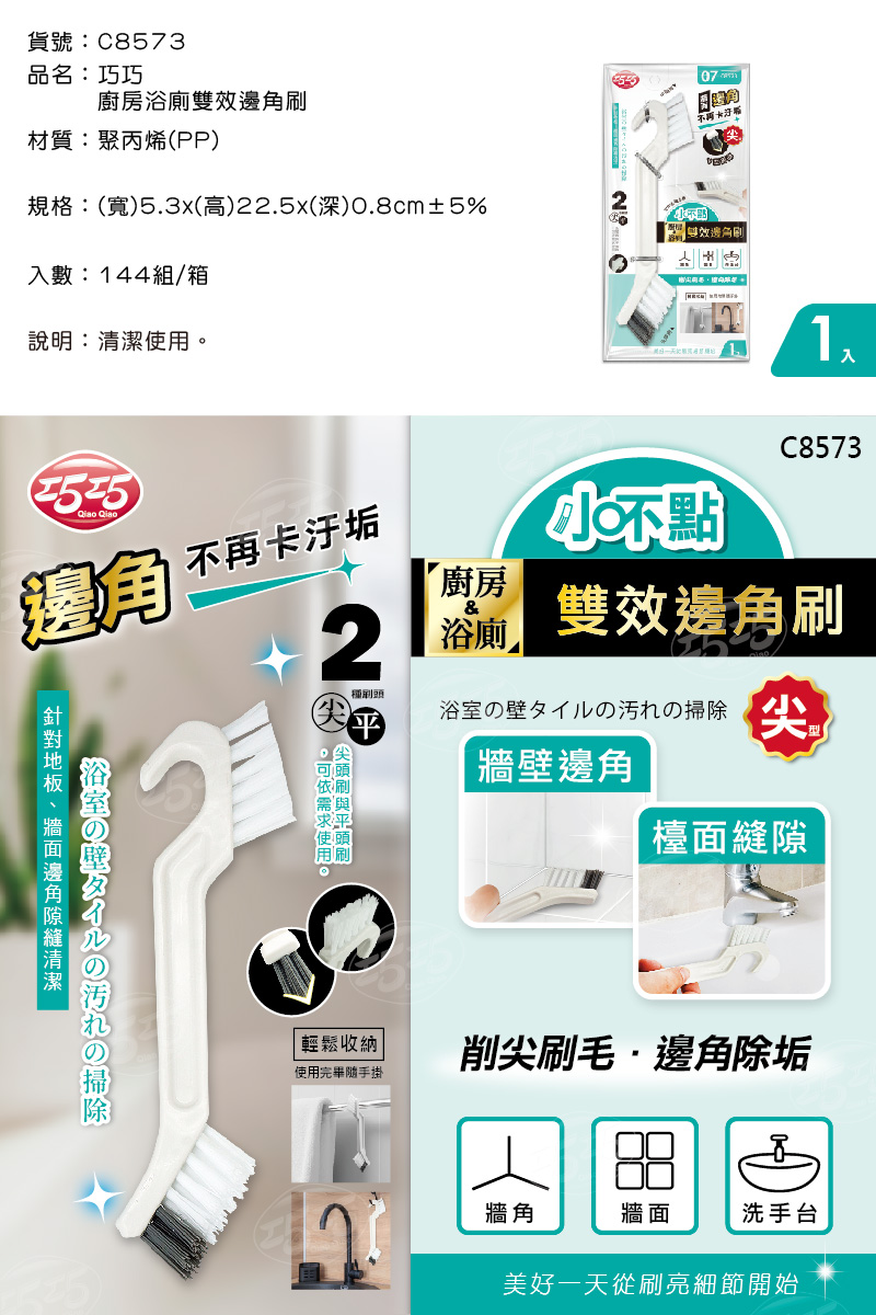 隆藝清潔用品 -- C8573/巧巧廚房浴廁雙效邊角刷