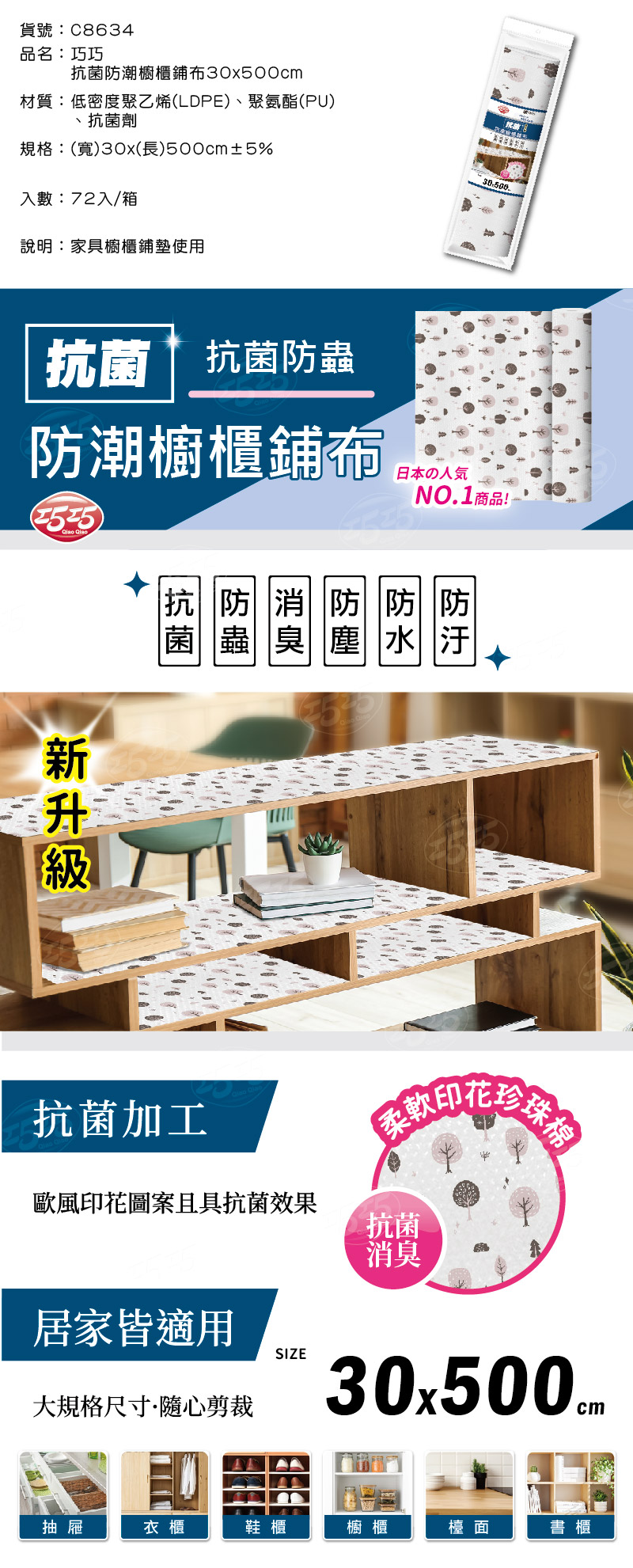 C8634/巧巧抗菌多功能櫥櫃墊(印花 圓點紋)30x180cm