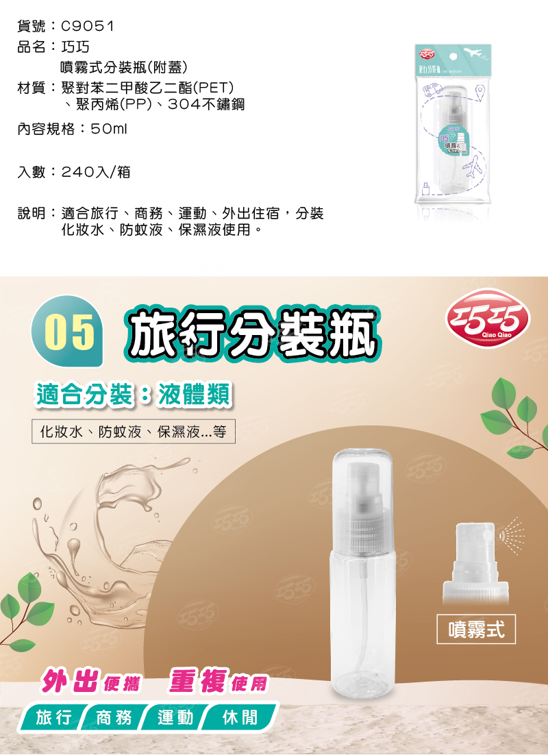 隆藝清潔用品 -- C9051/巧巧噴霧式分裝瓶(附蓋) 50ml
