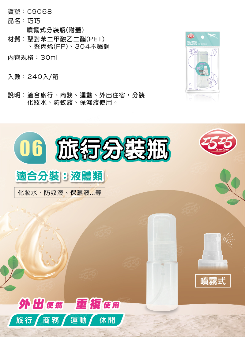 隆藝清潔用品 -- C9068/巧巧噴霧式分裝瓶(附蓋) 30ml