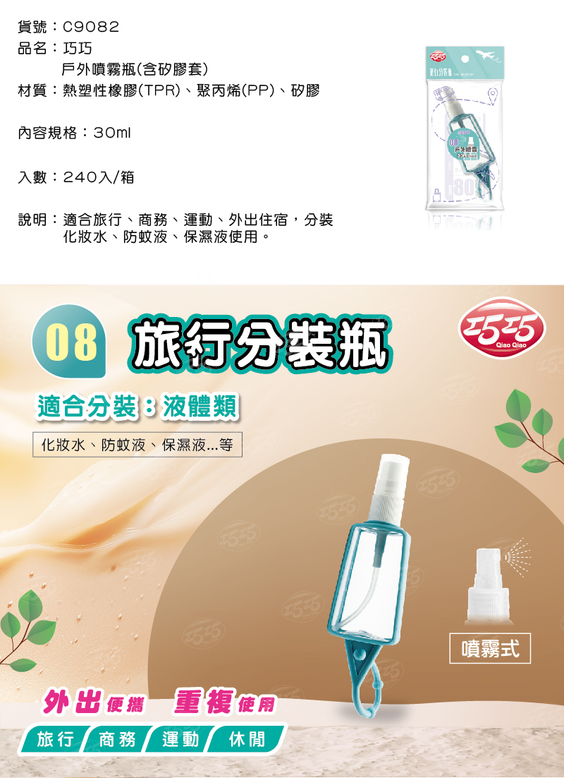 隆藝清潔用品 -- C9082/巧巧戶外噴霧瓶(含矽膠套) 30ml