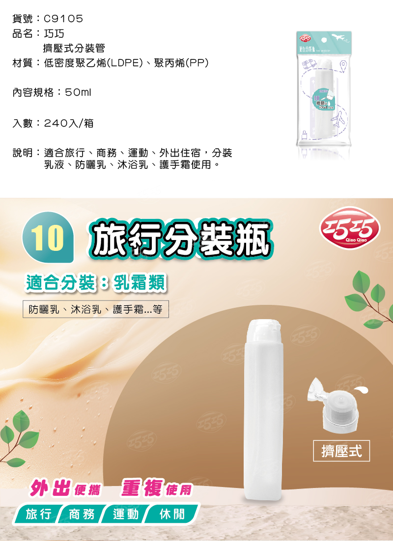 隆藝清潔用品 -- C9105/巧巧擠壓式分裝瓶 50ml