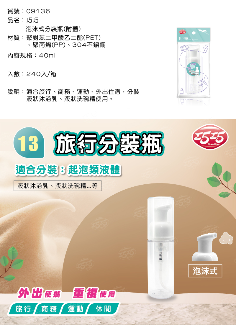 隆藝清潔用品 -- C9136/巧巧泡沫式分裝瓶(附蓋) 40ml