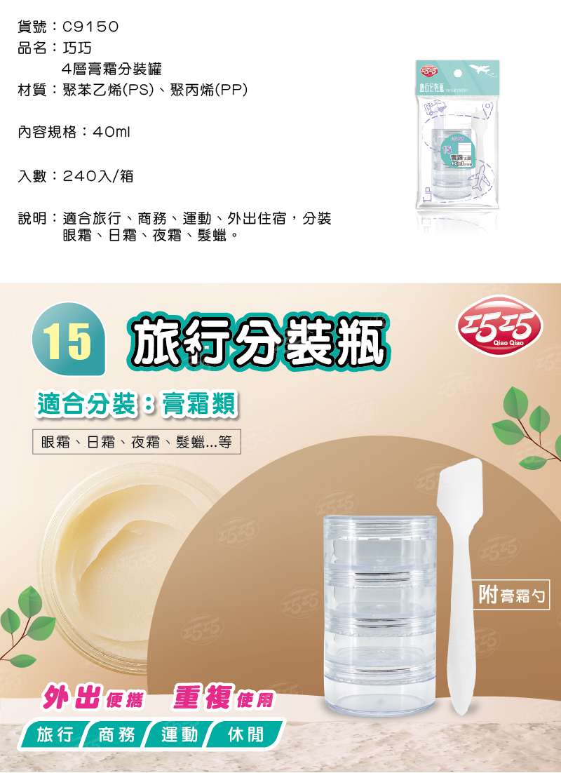 隆藝清潔用品 -- C9150/巧巧4層膏霜分裝罐 40ml