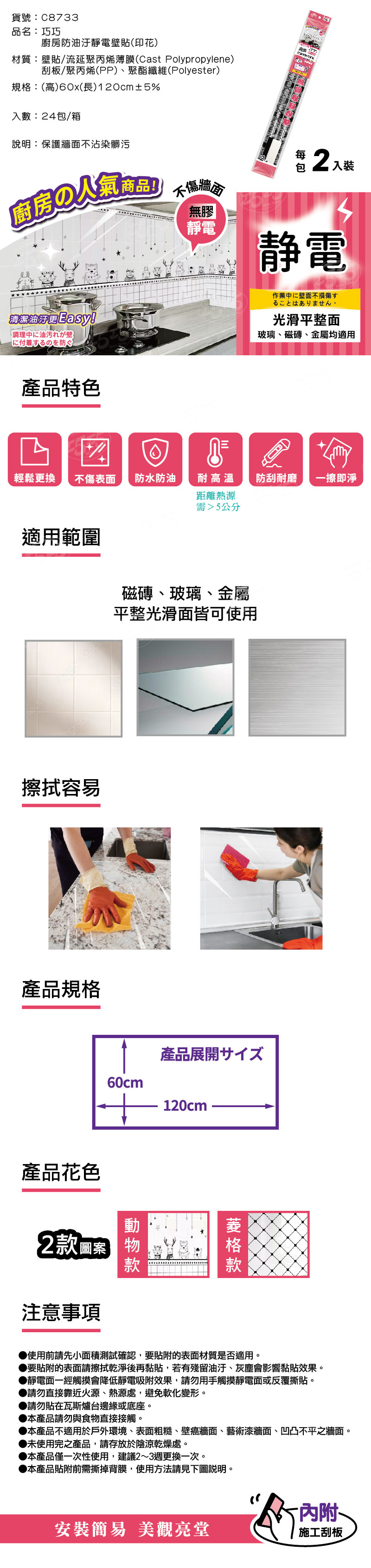 隆藝清潔用品 -- C8733/巧巧廚房防油汙靜電壁貼(印花60x120cm-2入)
