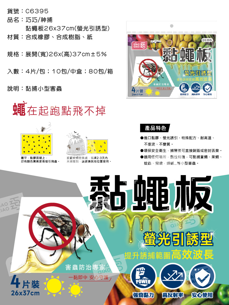 C6401/神捕黏蠅紙7x21cm(5入-窗貼型)