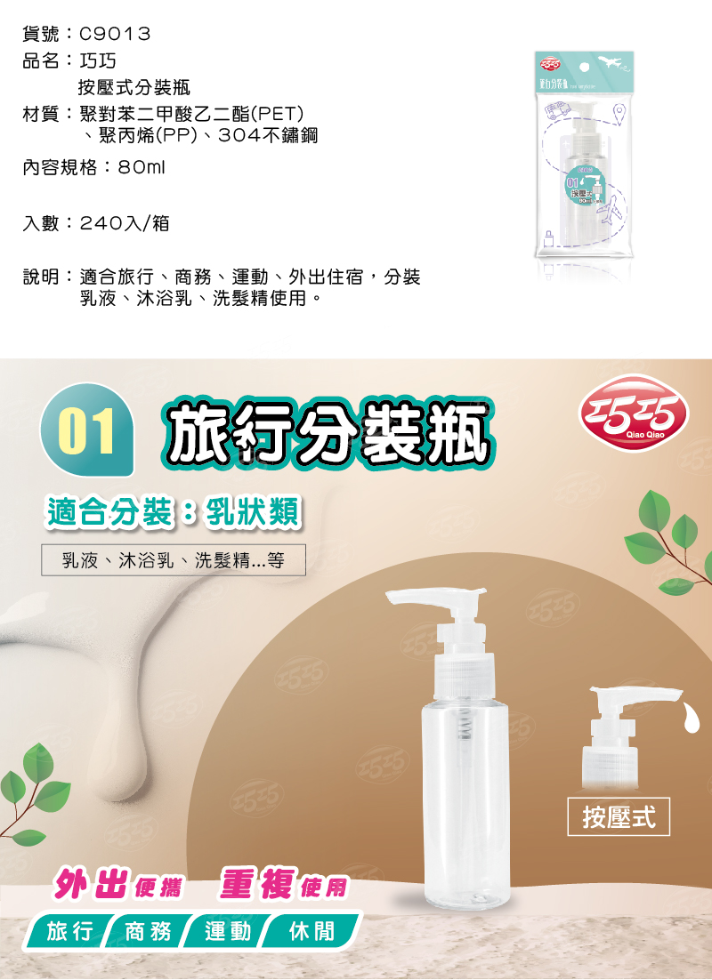 隆藝清潔用品 -- C9013/巧巧按壓式分裝瓶 80ml