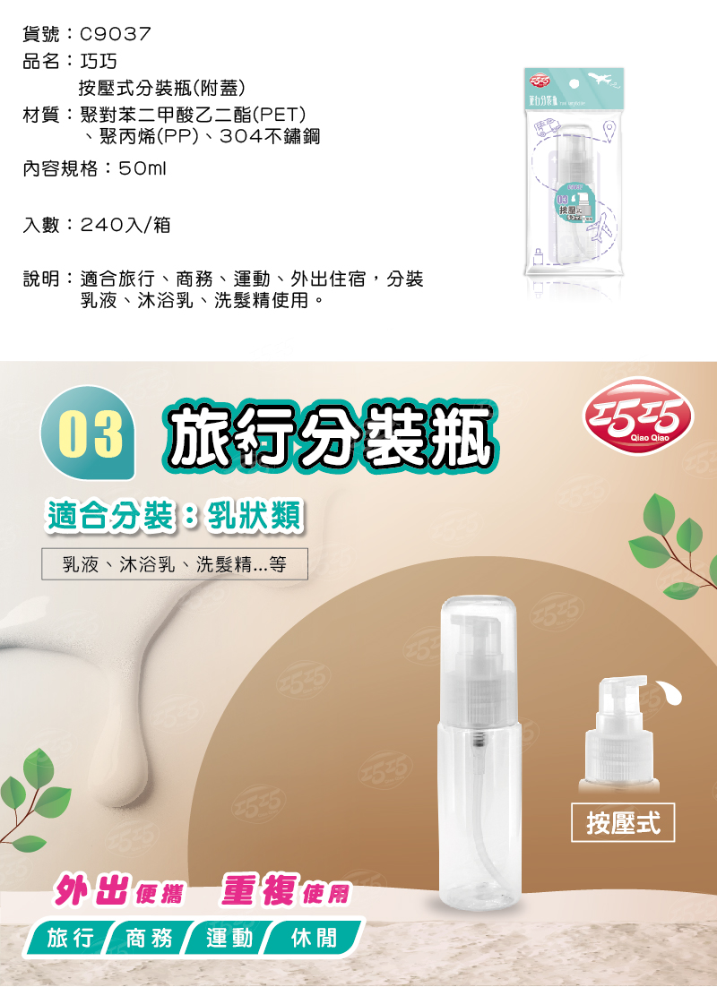 隆藝清潔用品 -- C9037/巧巧按壓式分裝瓶(附蓋) 50ml