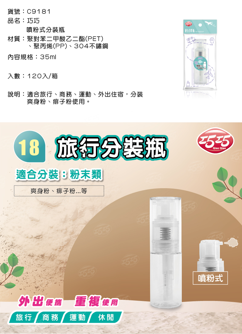 隆藝清潔用品 -- C9181/巧巧噴粉式分裝瓶 35ml