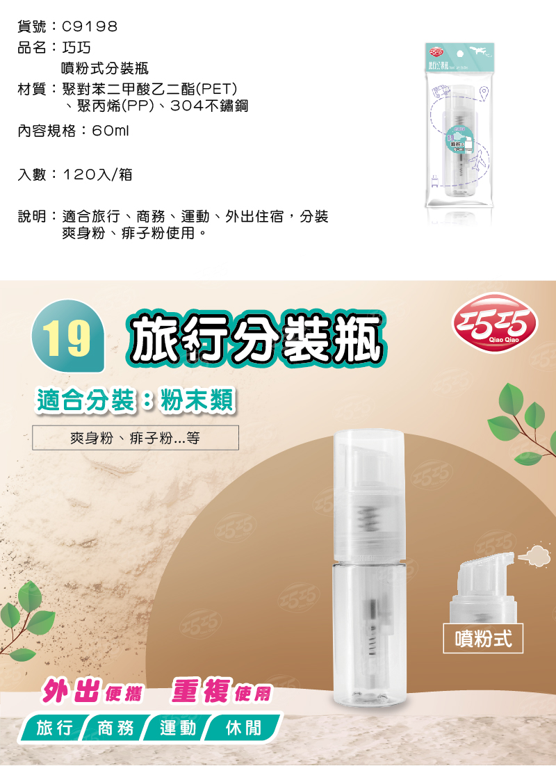 隆藝清潔用品 -- C9198/巧巧噴粉式分裝瓶 60ml